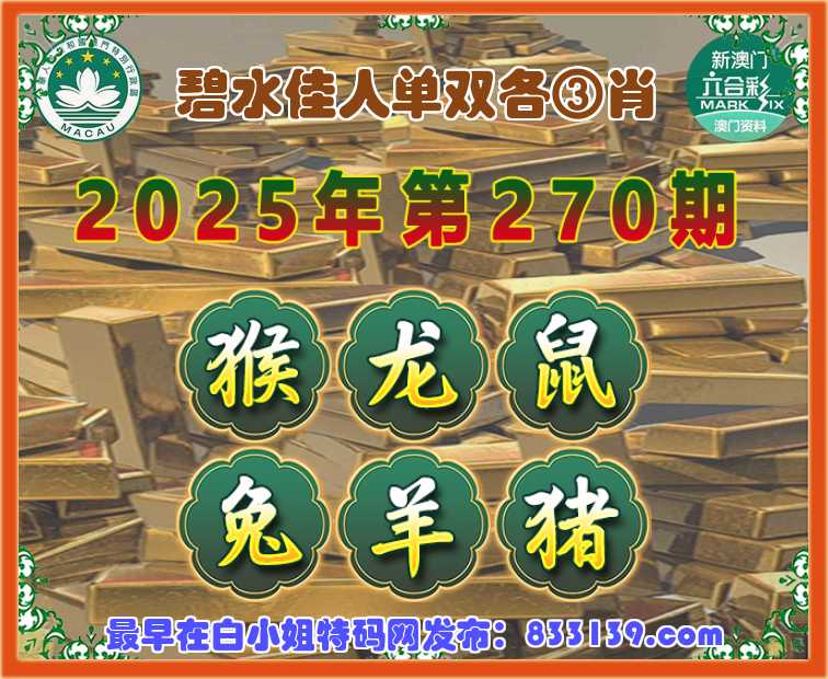 270期:【碧水佳人】 单双各③肖【猴.龙.鼠.兔..猪】开:羊35
