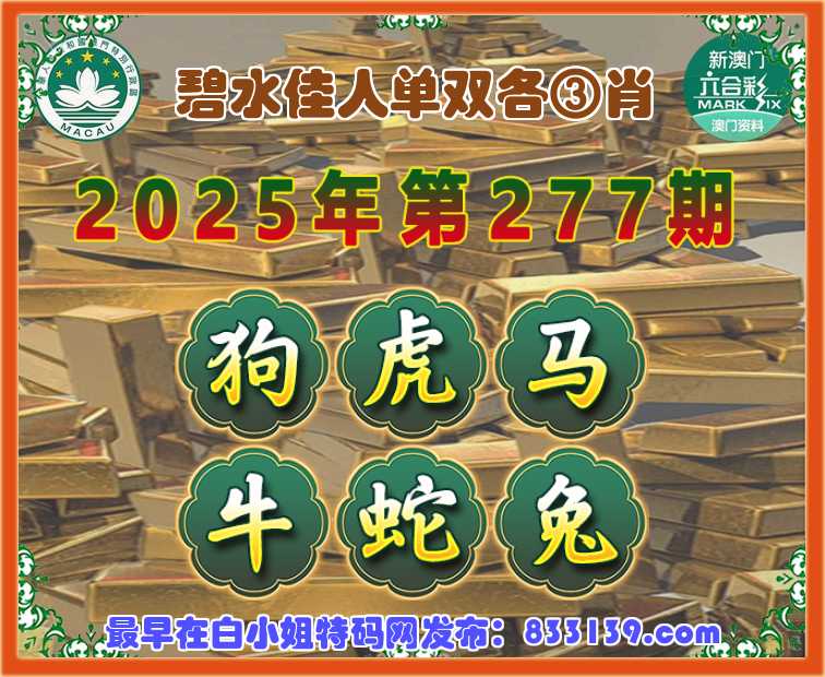 277期:【碧水佳人】 单双各③肖【狗..马.牛.蛇.兔】开:虎16
