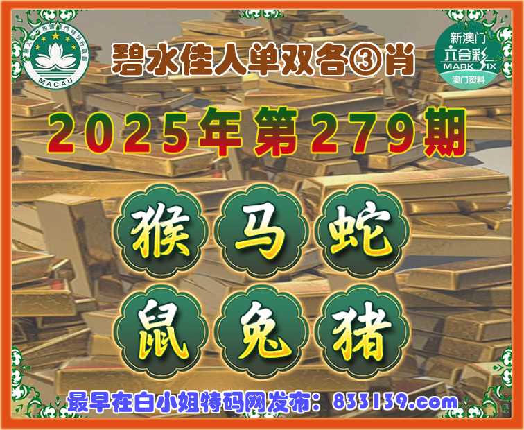 279期:【碧水佳人】 单双各③肖【猴.马.蛇.鼠..猪】开:兔27