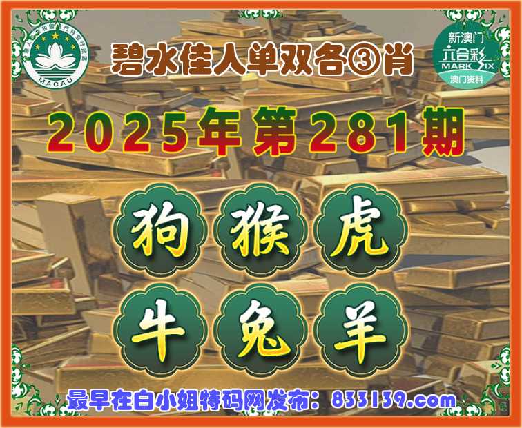 281期:【碧水佳人】 单双各③肖【狗.猴.虎.牛.兔.】开:羊47