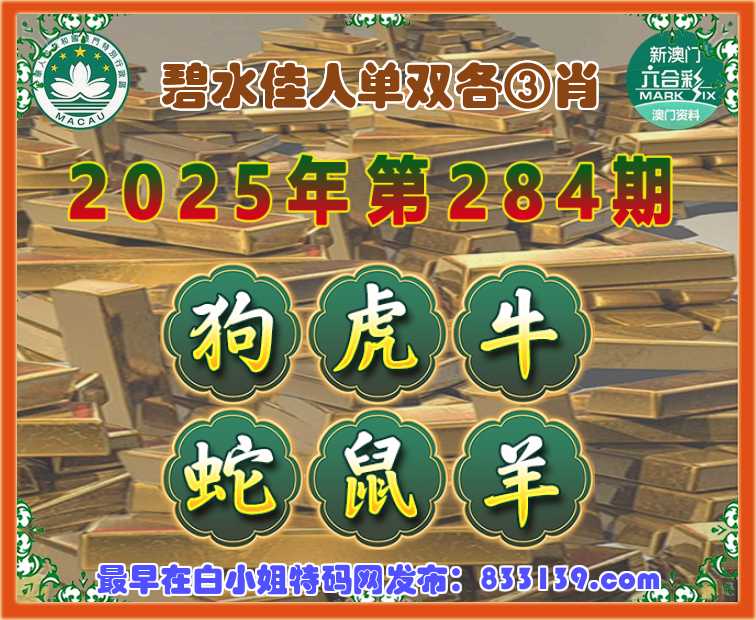 284期:【碧水佳人】 单双各③肖【狗.虎..蛇.鼠.羊】开:牛41