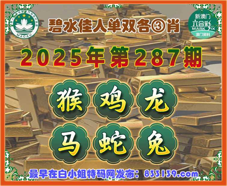 287期:【碧水佳人】 单双各③肖.鸡.龙.马.蛇.兔】开:猴34准上榜高手
